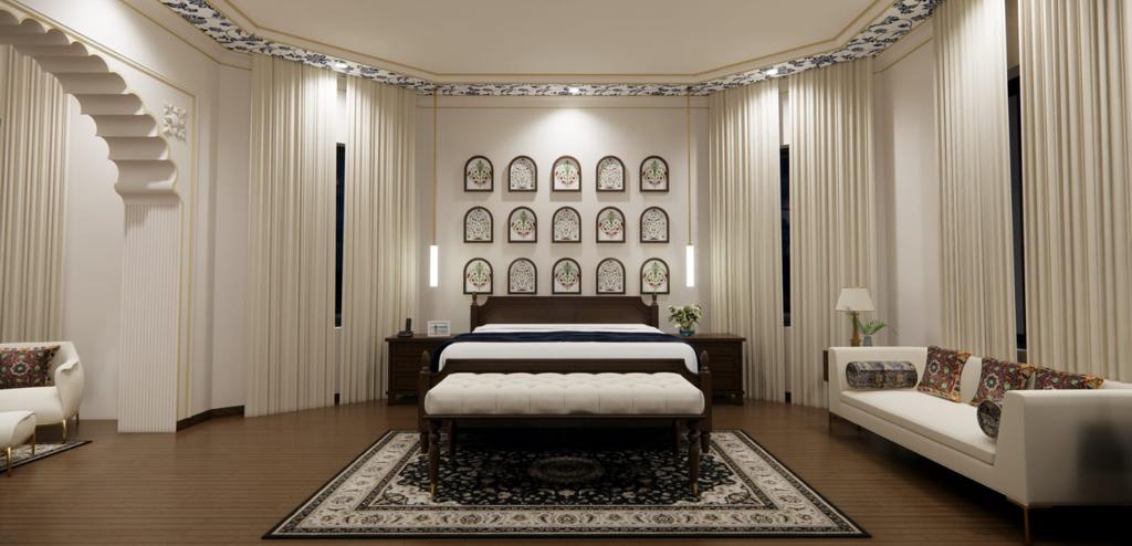 Crafted the interiors and spatial styling for Dera Jaipur as a warm, heritage-inspired retreat that blends classic Rajasthani details with contemporary comfort. Our design enhances the homestay’s leafy, colonial architecture with curated art, textures and lighting to create an intimate, luxurious guest experience.